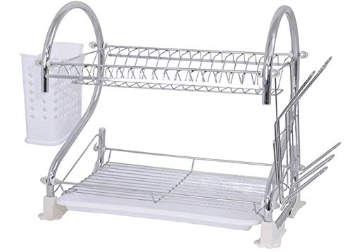 Wintem Diskställ med 2 nivåer rostsäker aluminium 55,5 x 35 x 27,3 cm vit - Inkluderar mugghållare på sidan av toppnivå, halkfria fötter, avtagbara tillbehör och avdelare