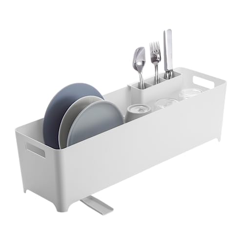 Carastek Diskställ porslin, diskkorg, diskställ för köksbänk, diskbänksorganisatör (vit)