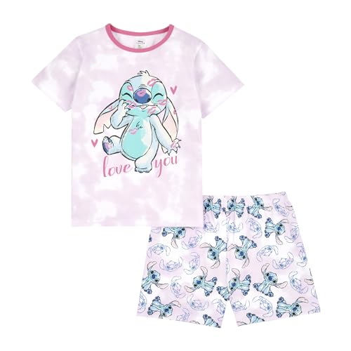 Disney Lilo & Stitch pyjamas för flickor, set med shorts, Lilo & Stitch nattkläder, Lila, 11-12 Years