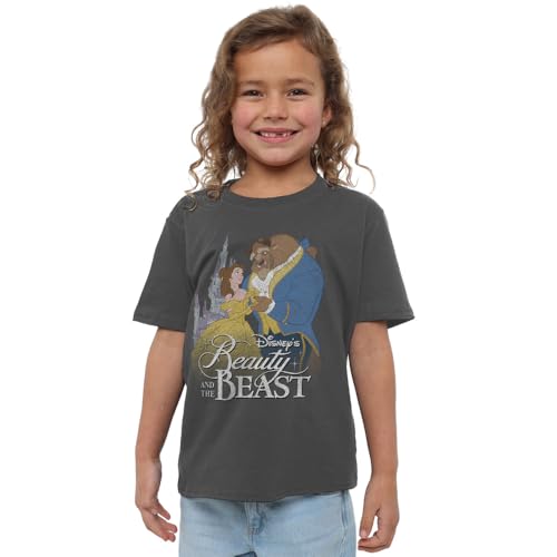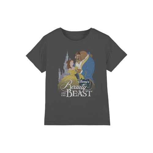 mandarin creative ltd Beauty and The Beast Belle Beast Castle Girls T-shirt, Träkol, 7-8 år, Träkol, 7-8 År