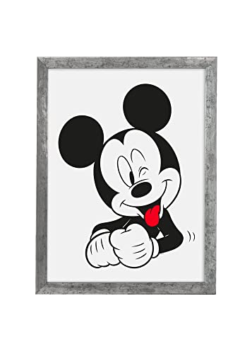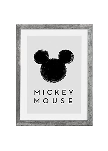 Komar Bildram trä sten silver med väggmålning "Musse Pigg Funny" som set – storlek: 30 x 40 cm – väggbild, dekoration, Disney, mus