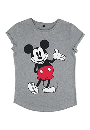 Disney Klassiska kvinnors Musse klassiska värld famous mus ekologisk rullad ärm t-shirt, melange grå, S, Melange grå, S