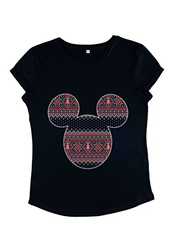 Disney Classics kvinnors Musse klassisk tröja fyllning mus ekologisk rullad ärm t-shirt, marinblå blå, L, marinblå, L