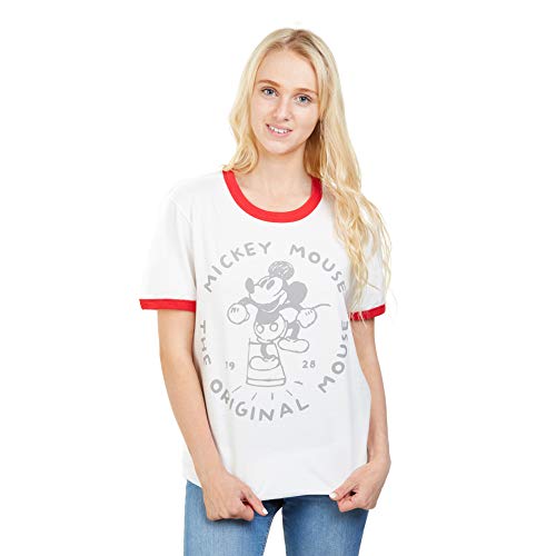 Disney Dam-t-shirt med original mus, Vit (vit/röd wrd), L