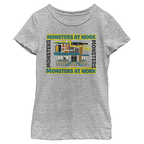 Pixar – Disney Little, Big Monsters at Work Building Girls kortärmad t-shirt, Athletic Heather, Small, Atletisk ljung, S