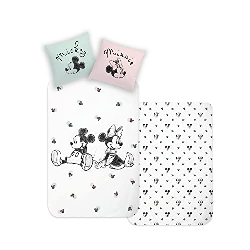 Disney Home Musse & Mimmi vändbara sängkläder, 1 x påslakan 135 x 200 – 1 x örngott 80 x 80 – supermjukt förstärkt 100% bomull, 2-delat sängklädes-set, mjukt och behagligt på huden