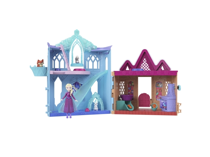 Mattel Disney Frost-leksaker, lekset med stapelbart Elsa-slott, dockhus med liten docka och åtta delar, inspirerat av Disneys Frost-filmer, reseleksaker och presenter för barn, HLX01