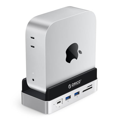 ORICO MiniDock dockningsstation och stativ för Mac mini M4/M4 Pro med NVMe SSD-hölje, M4 USB C-hub med 4K HDMI DisplayPort, SD/TF 3.0-kortläsare, USB-C/A 10 Gbps, PD 100 W – VS10