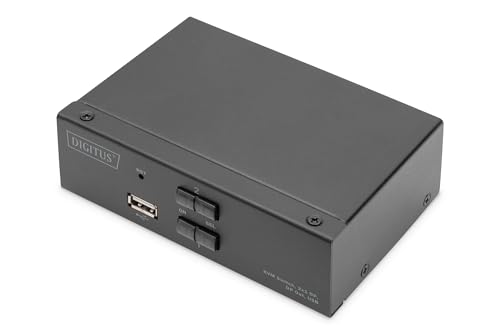 DIGITUS Displayport KVM-switch - 2 portar enkelskärm - 2 PC 1 bildskärm - 1x mus, tangentbord och ljud för 2 datorer - UHD 4K@60Hz (4096 x 2160p) - Hot-Key Switch - 1x USB 2.0 Hub - Svart
