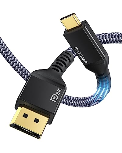 Maxonar USB C DisplayPort-kabel 8K vid 60 Hz, 4K vid 60 Hz/144 Hz/120 Hz, 5K vid 60 Hz, 2K vid 240Hz, Thunderbolt 3/4 till DisplayPort HBR3 typ C DP 1.4 för Mac Studio, MacBook Pro/Mini Galaxy S22,