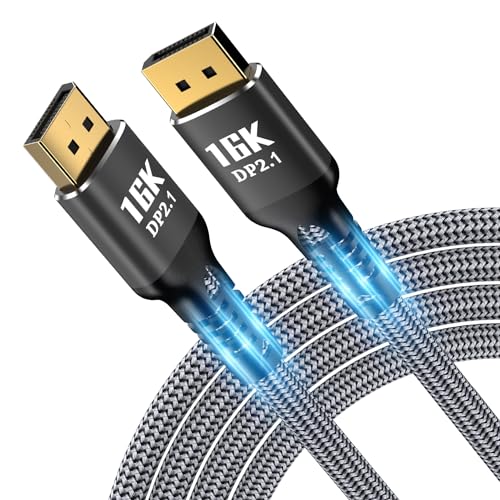 PersistDa 16K DisplayPort 2.1 80 Gbps, DisplayPort-kabel 16K@60Hz, 8K@120Hz, 4K@240Hz 165Hz 144 Hz, kompatibel med G-Sync och FreeSync, DP-till-DP-kabel för spelbildskärmar, PCs osv (1,0 m)