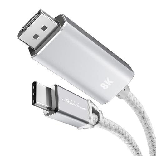 KabelDirekt – 8K USB C till DisplayPort 1.4-adapterkabel med metallkontakter – 1m (överför 8K/60Hz från laptop/smartphone till stora skärmar – DP 1.4, USB 3.1, Thunderbolt 3 – Vit)