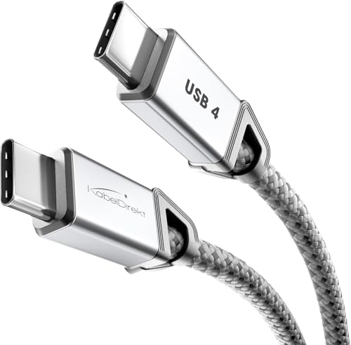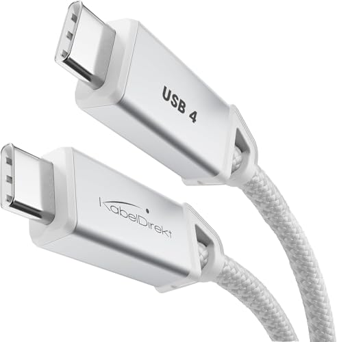 KabelDirekt – USB-C-kabel, USB 4.0 för 40GBPS & 240W, DisplayPort med 8K60Hz, Metallkontakter + nylonfläta – 1m (laddnings-/data-/monitor-kabel för mobiler/laptops/PCs – Vit)