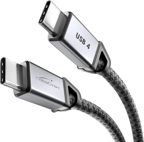 KabelDirekt – USB-C-kabel, USB 4.0 för 40GBPS & 240W, DisplayPort med 8K60Hz, Metallkontakter + nylonflätning – 0,5m (laddningskabel/datakabel/monitor för mobiler/laptops/PCs – Grå)