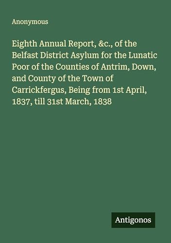 Eighth Annual Report, &c., of the Belfast District Asylum for the Lunatic Poor of the Counties of Antrim, Down, and County of the Town of ... from 1st April, 1837, till 31st March, 1838