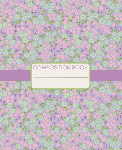 Pink and Purple Ditsy Floral Composition Notebook: College Ruled, Pastel Blossom Field Pattern on Ivory, Stylish Writing Notebook for Girls, Teens, Women and Students