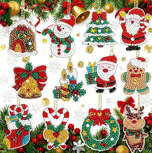 Guidre 12 st juldiamantmålning juldörr, DIY 5D diamantmålning hängsmycken, perfekt för barn och vuxna, nycklar, väskor och julgran