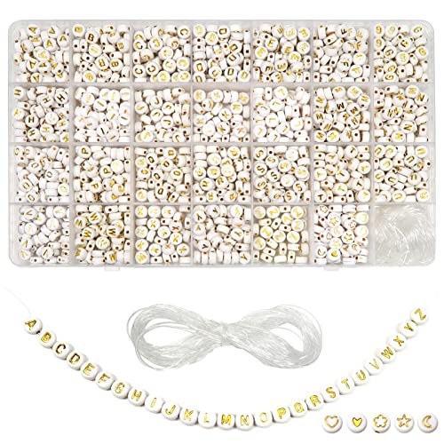 TOAOB 1440 st 7 x 4 mm alfabet akrylpärlor guld rund bokstav och hjärtmönster med 15 mm kristalltråd för DIY armband, halsband, smycken