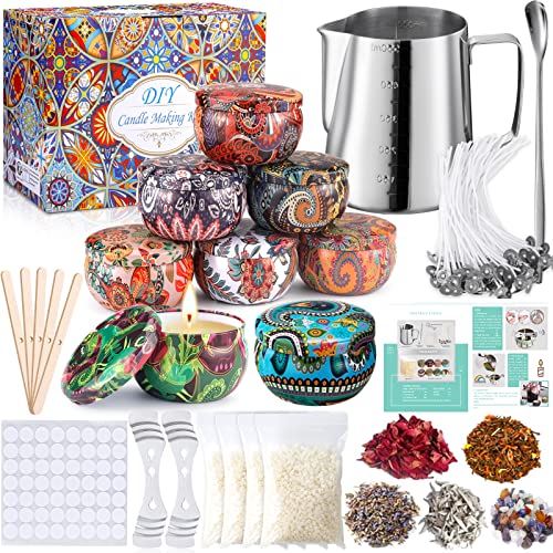 MUOIVG DIY vax ljus tillverkningssats, DIY ljus, kit för tillverkning av doftljus, 50 ljusvekar, 1 tillverkningsburk, 8 burkar lådor, 56 veke klistermärken och 2 fästen