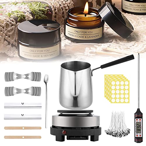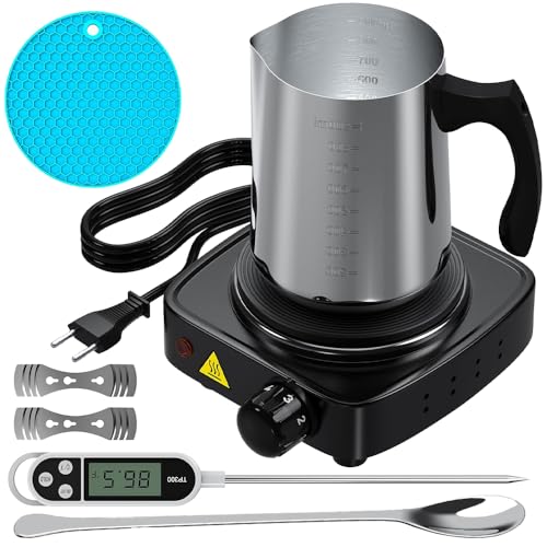 DIY vax ljus tillverkningssats, 600 ml vax och tillbehör för tillverkning av doftljus med anti-brännhandtag, elektronisk värmeplatta för vuxna nybörjare