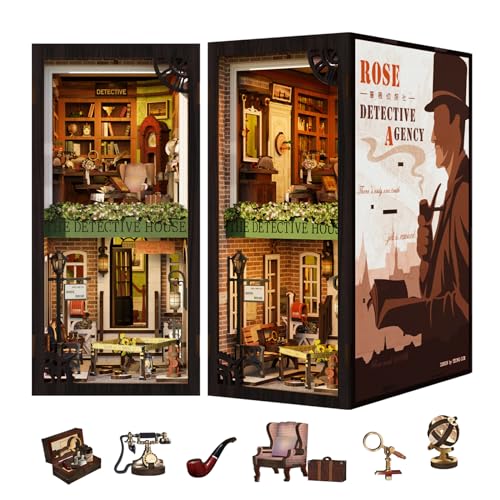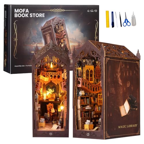 Cutefun DIY bokkrokskit med dammskydd, gör-det-själv miniatyrdockskåp kit, bokhylldekor, bokstöd, Booknook modellkit med möbler och LED-ljus, trämodeller att bygga för vuxna (SZ02B)
