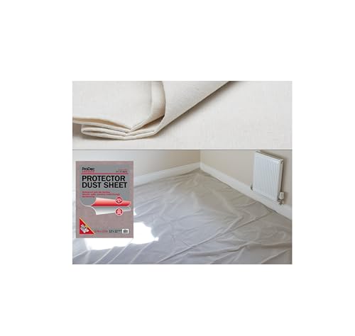 ProDec 12ft x 9ft (3,6m x 2,7m) Bomullsduk Tungt dammtäcke för målning, dekorering, täckning av golv och möbler, absorberar spill, ingen genomblötning, DIY och professionell, återanvändbar