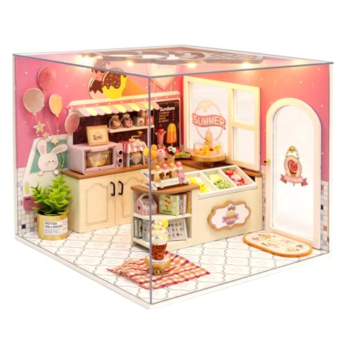 Cuteroom DIY trädockor hus hantverk miniatyr kit pojke sovrum modell och alla möbler (lycka Ice Cream Shop), C0156