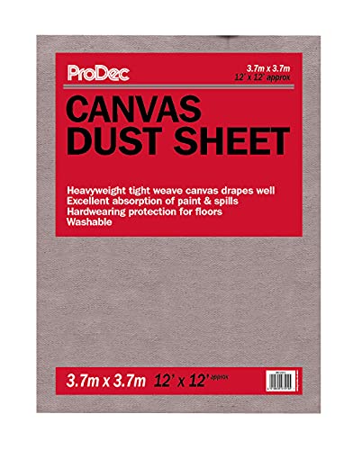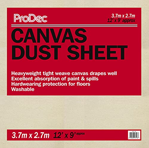 ProDec 3,6m x 3,6m (12ft x 12ft) tungviktsduk av bomullscanvas för målning, dekoration, golv och möbler, absorberar spill, suger inte igenom, DIY och professionell, återanvändbar