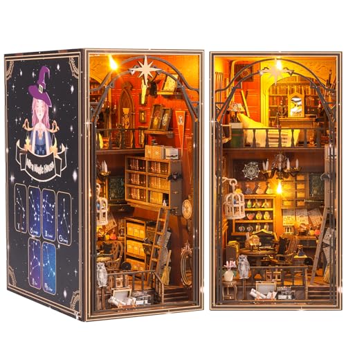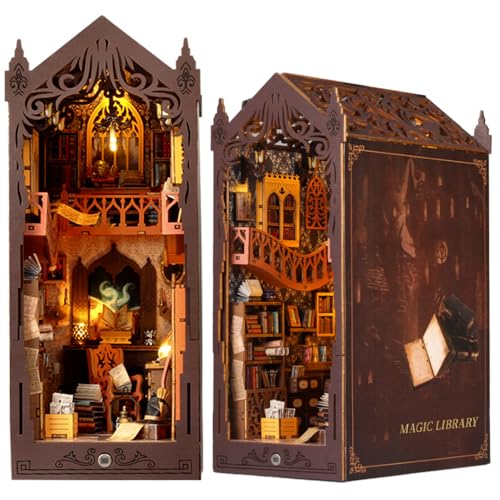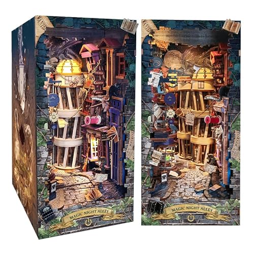Cuteefun DIY Book Nook Kit, DIY-bokhylla, miniatyrdockhussats med möbler, modellkit för vuxna (Magic Night Alley)