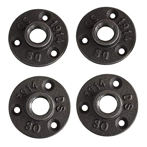 Fleymu 4 st 1/2 tum rörfläns vintage industriell hyllhållare, vägghylla, retro, flänsbeslag, svart gängade golv, formbart gjutjärn, flänsar för DIY möbler, industriella hyllor, dekor