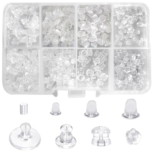 TOAOB 600 Stycken Silikon Örhängen Propp Rygg 8 Stilar Klar Baksida Örhänge för Slutningar Rygg Öronsnäckor för Krokar DIY Örhäng Smyckestillverkning