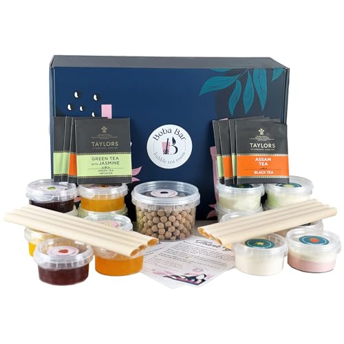 Boba Bar London | Premium Bubble Milk Tea Kit DIY | Blanda mjölk te smaker med Bobas gelé och tapioca | Serverar 8 | perfekt för fester, jul, födelsedagar, presenter
