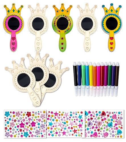 SUVEK 12 DIY-spegelkit, hantverk, prinsesskrans i trä, hantverk för barn, födelsedagsdekoration i trä, presenter till 5–12 år gamla barn