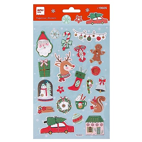 APLI Kids 19605 - Julklistermärken, 1 ark med cirka 22 permanenta klistermärken. Perfekt för Scrapbooking, DIY eller dekorera presenter, kort eller andra juldetaljer.