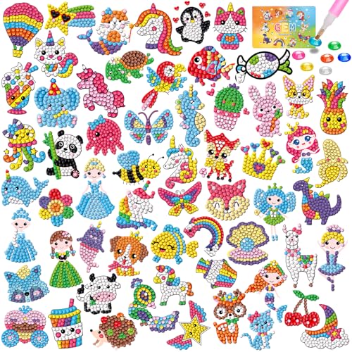 Diamantmålningsklistermärken, CAYUDEN 60 st Diamantklistermärken Barn Djur DIY Craft Diamond Arts Stickers Kit 5D Diamond Dots Cartoon Mosaic Stickers Gem Arts and Crafts Kit för barn 6 7 8 9 10 12