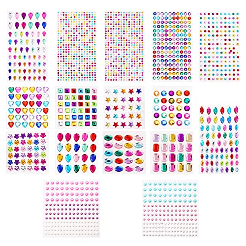 Vicloon 1908 st Crystal Rhinestone Stickers, 16 Sheets Självhäftande Bling Rhinestone Jewels Sticker, 9 Styles Gem Stickers för DIY-pysselkort Ansiktssminkning Utsmyckning Diamond Gem Dekorationer