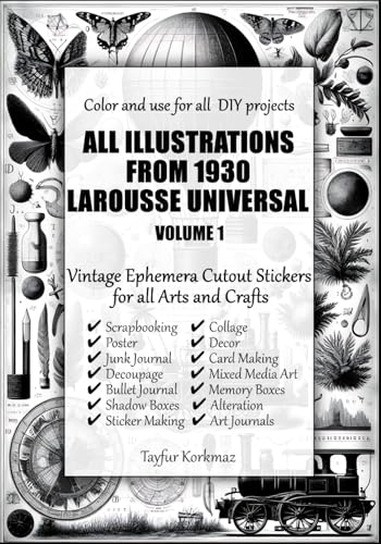 Color and use for all DIY projects - ALL ILLUSTRATIONS FROM 1930 LAROUSSE UNIVERSAL: Vintage Ephemera Cutout Stickers for all arts and crafts
