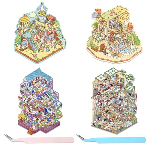 TYXHXTF Scenklistermärken 4 set 3D House Stickers, DIY nöjespark bedårande 3D-klistermärken för vuxna, barn