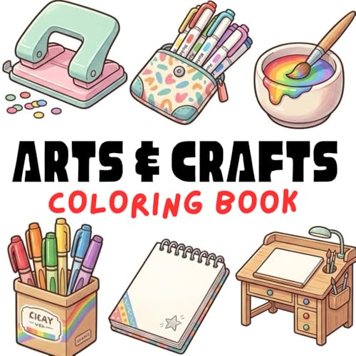 Arts and Crafts Coloring Book for Girls Ages 4–8: Paint Brushes, Craft Tools, Paper, Stickers and DIY Supplies | Bold and Easy Big Designs with Thick Lines for Kids