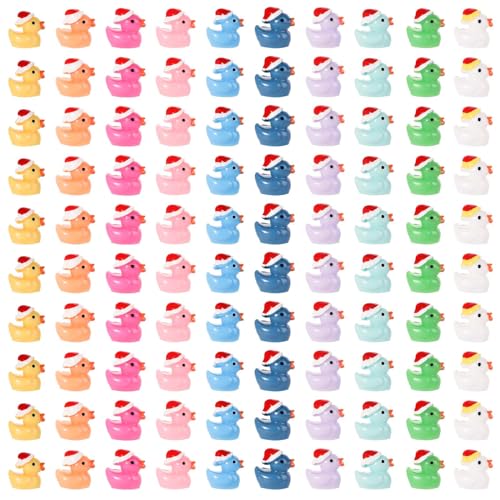 AIEX 100st Jul Hartsankor, Mini Harts Ankor Små Ankor med Julhatt Pytteliten Resinandminiatyr för Trädgård Landskap Dockskåpsdekorationer DIY-Berlocker (Färgglada)