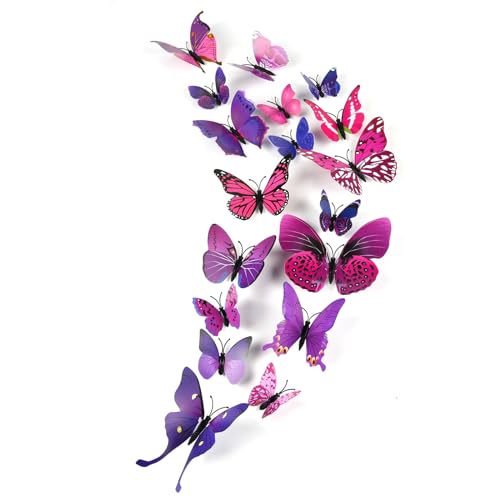 PLULON 48 st 3D fjäril väggdekaler sovrumstillbehör för barn flickor DIY fjärilsdekorationer för hem, sovrum, trädgård (lila)