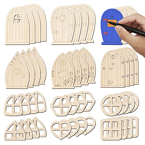 Miniatyrdörr, 48 st fairy dörrtredörrar för träd oavslutade mini -fönster fairy house diy kit fairy trädgård tillbehör, typ 1 statyer