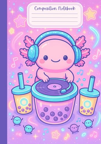 Axolotl Kawaii Composition Notebook: Cute DJ Bubble Tea Study Journal For School For Kids, Teens and Young Adults
