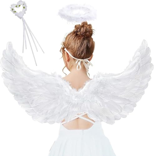 Halloweenvingar, 3 stycken änglavingar, kostym, 60 cm ängelvingar med ängel, hårband och trollstav djävul, kostym damer ängel, fest karneval kostymer, dekoration, kostymfest