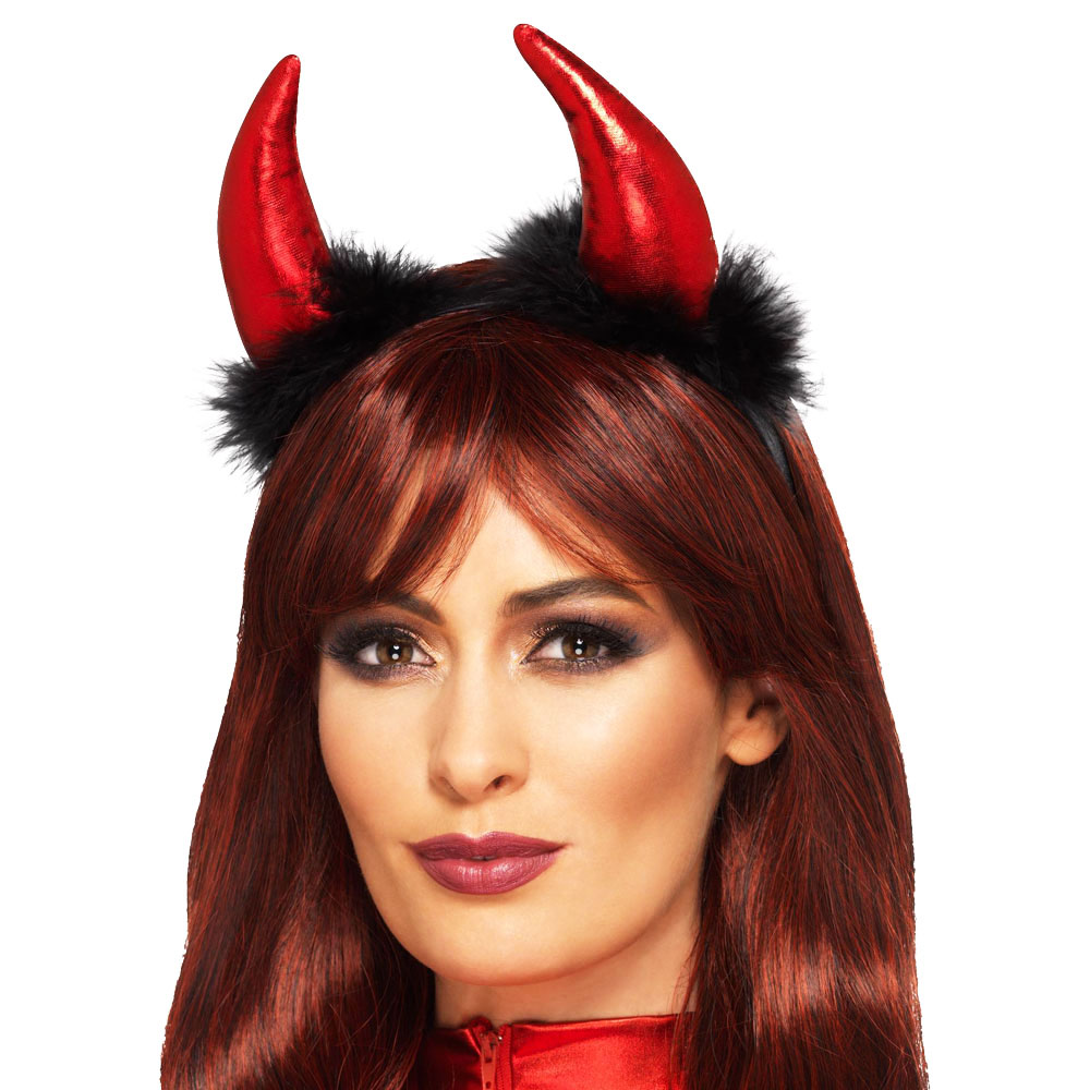 Folat 23857 23857-Happy, pannband tiara djävul röd djävulshorn halloweenfest, flerfärgad