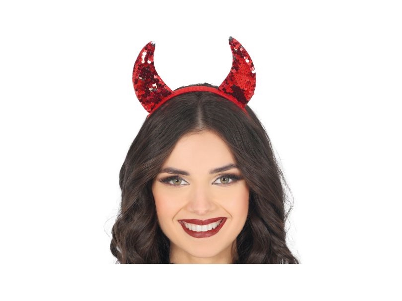 Röd paljett djävulshorn tillbehör för Halloween Lucifer Satan fin klänning