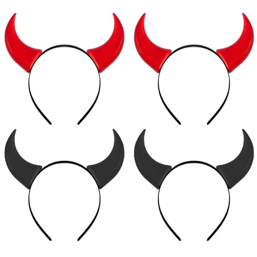 GWAWG 4-pack halloween pannband, djävulshorn huvudbonad för kvinnor flickor pojkar, demontillbehör fest fin klänning dekorationer maskerad kostym