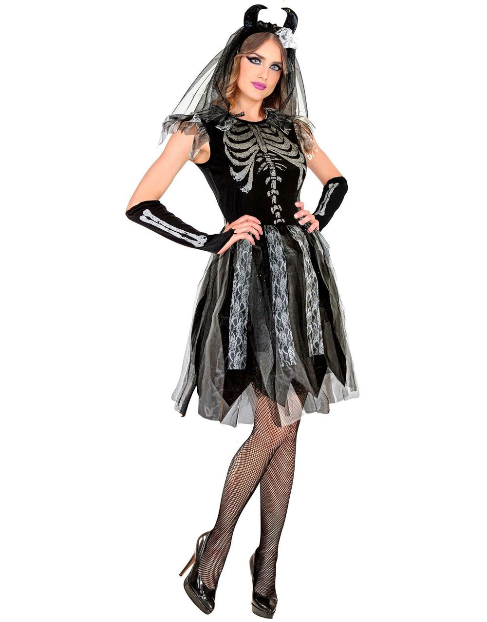 Djävulsk Skelett-Brud Maskeraddräkt
