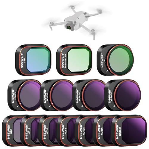 NEEWER Filterset kompatibelt med DJI Mini 4 Pro, 14 st, ND-polariserat filter, ND8 ND16 ND32 ND64 ND128 ND256 ND1000 ND8/PL ND16/PL ND32/PL ND64/PL svart spridning 1/4 ljusförorening CPL, FL-BL 005