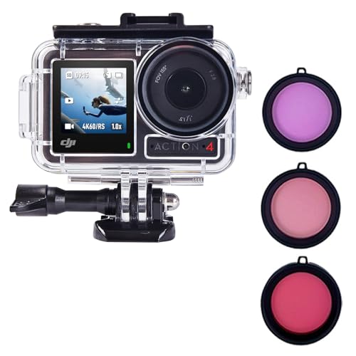 45 m vattentätt fodral för DJI Osmo Action 4/Action 3 kamera dykarhölje, dykarhölje, dykning, snorkling, simning med snabbfrigörande skruv undervattensskydd tillbehörssats